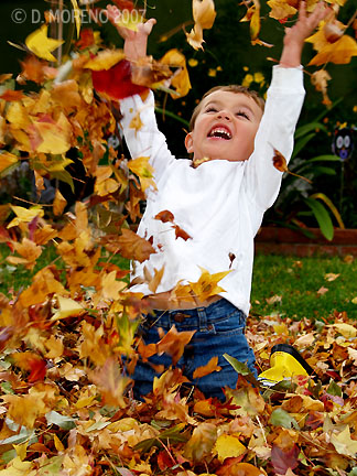 Anthony goes nuts in a pile of leaves!