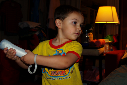 Okay, so he was actually playing Wii Sports’ golf and not baseball. In either case, Anthony has been having fun playing Wii the past few nights. He started off with baseball and realized it was more than he can chew, then he tried tennis and had the same result.