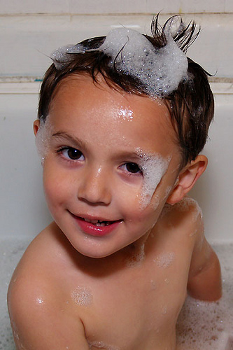 It may be difficult to eliminate the shadow underneath The Kid’s chin with just one flash unit and a bouncer, but I still think the lighting is better than what I get using the built-in flash.