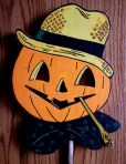 As proof of my artistic prowess, I offer a shot of one of the few projects I am actually proud of that always seems to make its way from the darkest depths of the garage this time of year. The image at the top of the page is something I threw together over two days back in 1996 and was based on a vintage Hallowe’en decoration my mom gave me a few years prior. (To see more from the same era and possibly set, click here. I dig old Hallowe’en decorations!)