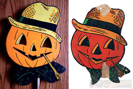 They’re almost identical in terms of design but I think mine is a bit smaller. Oh well; I still dig it. As a matter of fact, there were a few other vintage Hallowe’en decorations in the bunch! And since I’m such a nice guy, I’m going to share the wealth.