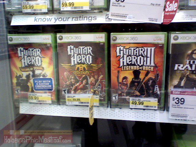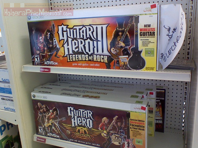 That there is a clearance sidecap filled with Guitar Hero III and Guitar Hero Aerosmith bundles. I thought meh, they’re probably still at least sixty bucks for them. I checked out the clearance price tag and one read $24.98.