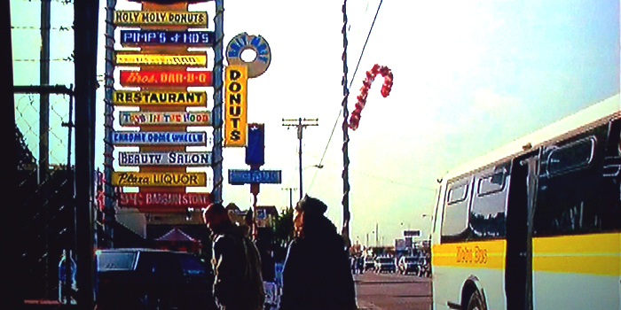 Some of the other missing shots include some of the liquor store which really is a liquor store, the interior of Holy Moly Donuts, and the signs above the “Weave It Alone” and “Pimp’s + Ho’s” storefronts. Naturally, should I find them, I will most definitely post them here.