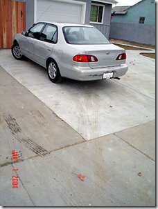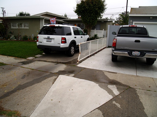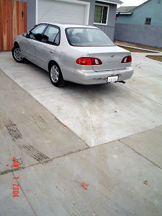 …they would drive your side of the driveway (see tire tracks) to park their car…
