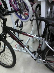 The next day I found myself driving out to the thrift shop, getting there well before opening and hoping that the bike would still be there. At 10 am, I happily strode into the place and yes, it was still locked to the display–the only one that was. After all, this was a Trek and not a Murray.