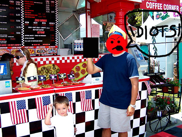The main reason anybody goes to the fair is to engorge themselves in the variety of foods that are available. Immediately after entry, we headed on over my favorite food vendor, Ten Pound Buns. I look forward to eating their BBQ chicken, sourdough-bread pizzas each year and of course, 2010 was no exception. And as matter of fact, here I am back in 2008 when I was their first customer: