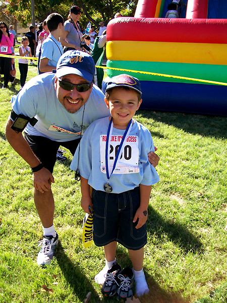 I ran in my first 5k, a fundraiser for Anthony’s school. The event also consisted of a 1k kid’s Fun Run in which Anthony did participate but because he’s still recovering from whatever it is he has (namely a bad cough), he took it easy but I was with him the entire time. He got a medal for finishing; I got oranges and pancakes afterwards.