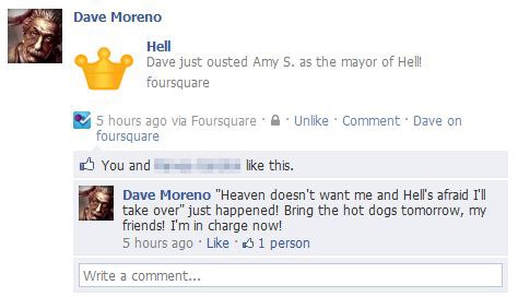 I am, in some capacity but not necessarily officially, the Mayor of Hell. Well, at least according to foursquare I am: