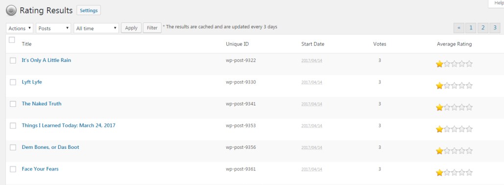 And each of my posts has a star rating system at the top so readers can give me some feedback about what they just read. Apparently, I did something to piss off a few trolls on April 14, 2017 since on that day, several of my posts were given a salvo of one-star ratings or, as it reads on the mouseover, “This sucks!”