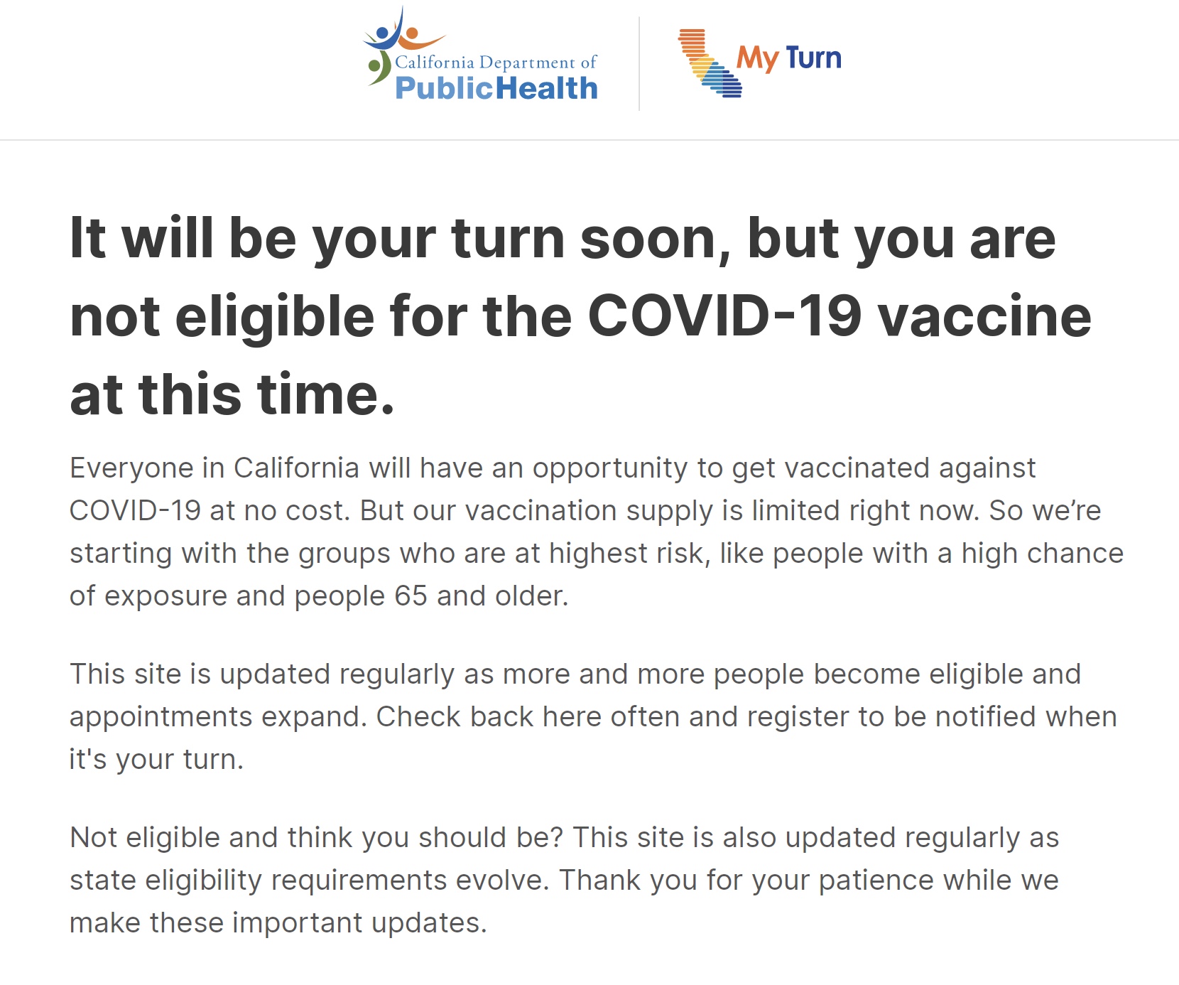 I haven’t been shot yet because I do not meet the state’s criteria of being a fat…uh, morbidly obese nor do I fall within the age range of being 60+, work in field that puts me at risk, or have any underlying conditions that put me at a higher risk of dying from COVID. Damn you, you healthy stinking body!